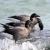 23/02/2014, Pointe de Mousterlin, 8 oies bernaches cravant et hrota, picorent des algues malgré la mer assez agitée